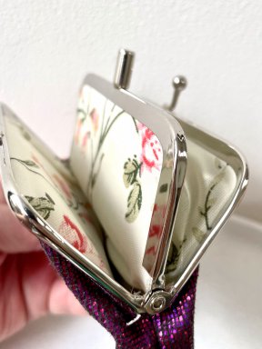 Terug naar de jaren 80! Handig Old school portemonneetje met 2 vakken. Binnenin een leuk bloemenmotiefje. Handig modelletje, ideaal om muntjes en kaarten in te bewaren. Elegant, simpel en praktisch!