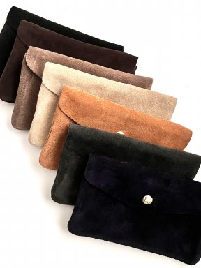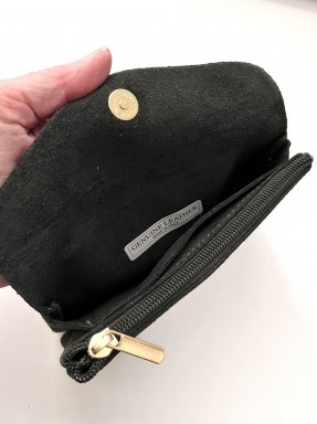 Handig lederen langwerpige enveloppe-portemonnee, met apart ritsvak voor muntjes.