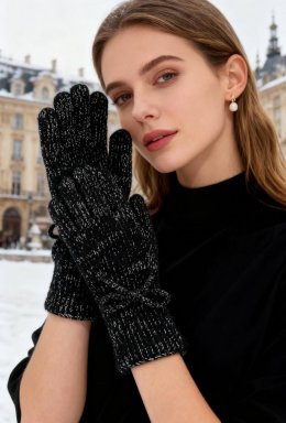 Vervolledig je outfit met de stijlvolle gebreide zachte Arco handschoenen met leuke strik aan de pols en subtiele glitters in de stof verweven. Ideaal voor de koudere dagen. Uit dezelfde reeks zijn er ook mutsen beschikbaar.